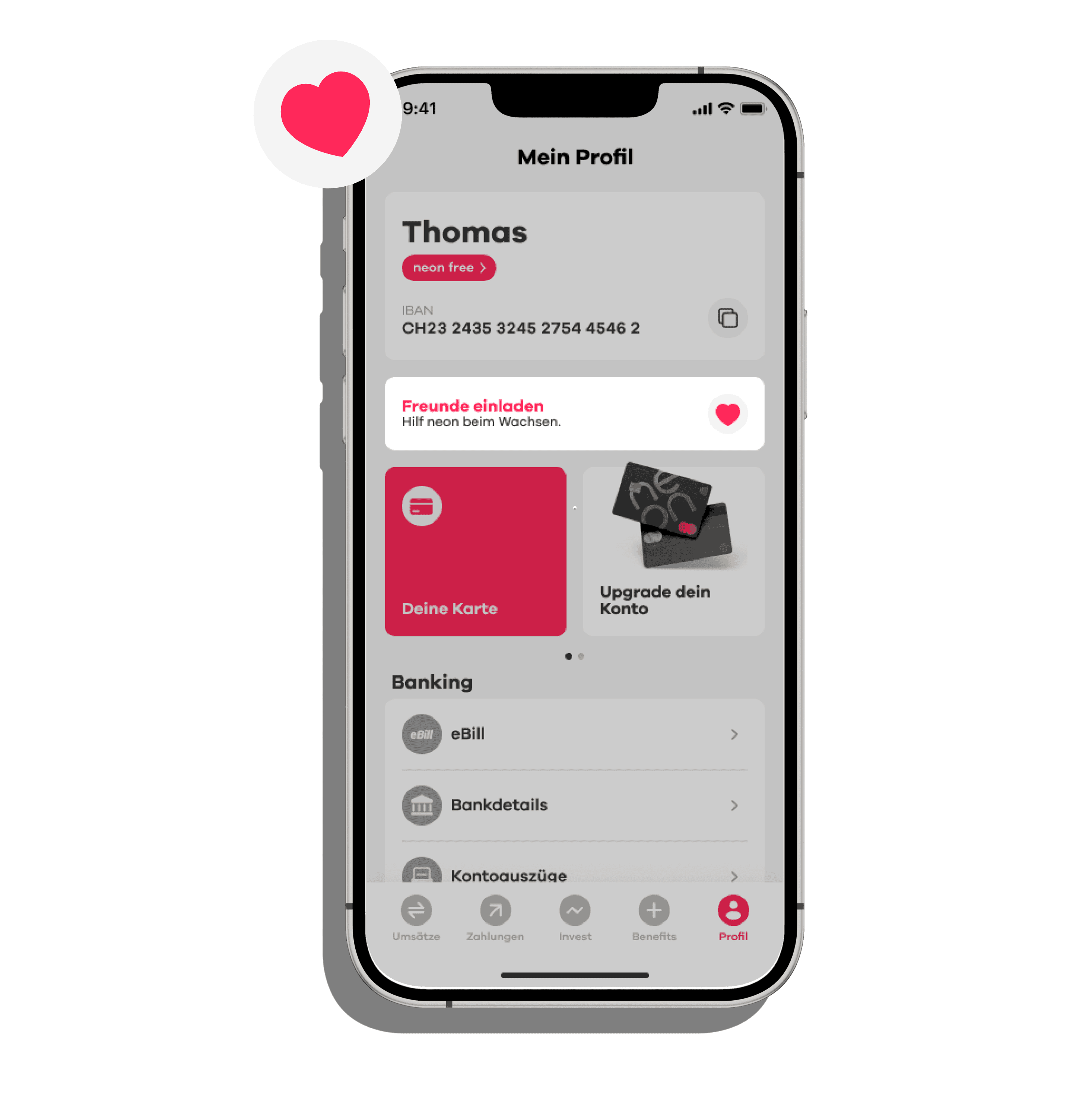 1. Vai alla scheda «Profilo» nell'app. 2. Clicca su «Invita un amico». 3. Condividi il tuo codice personale. I tuoi amici potranno poi inserire questo codice durante l'apertura del conto.